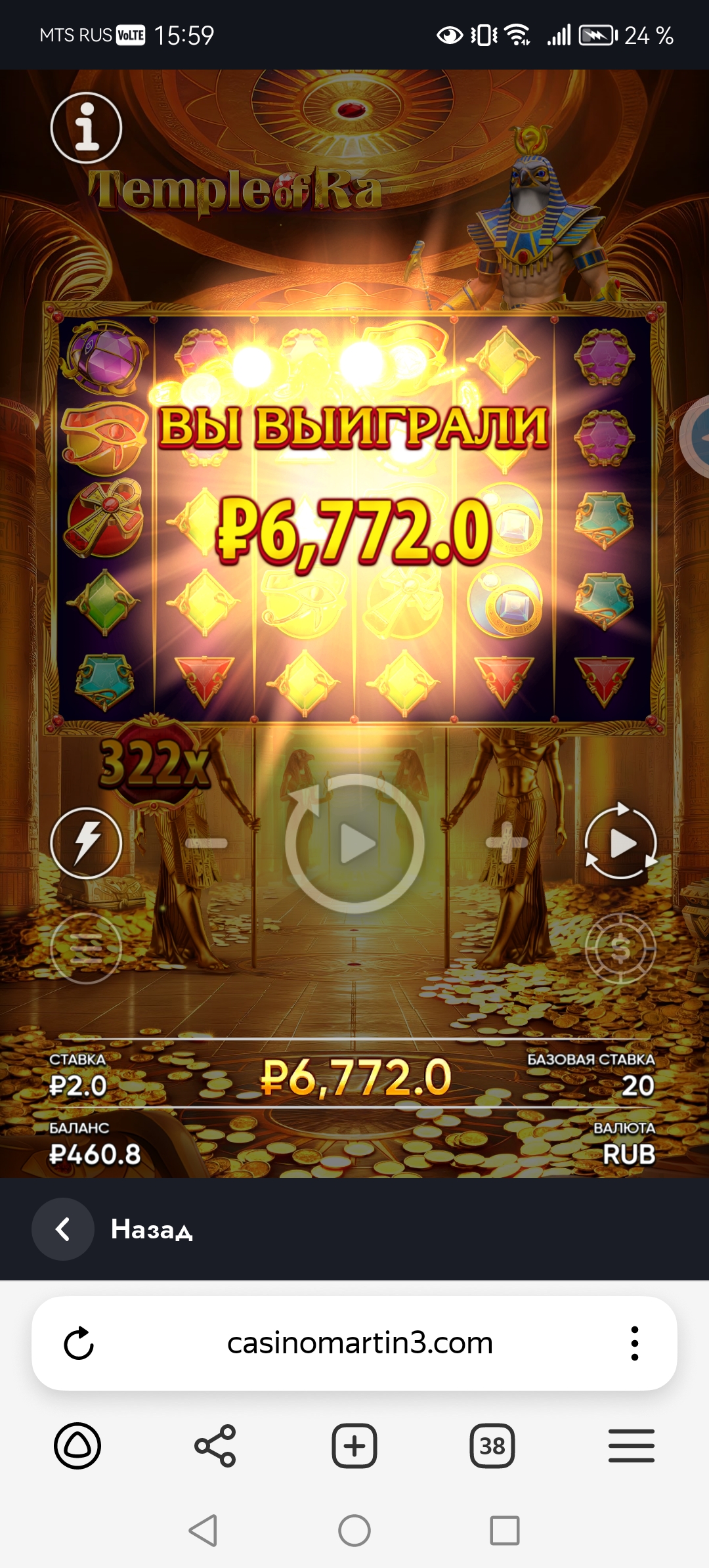 казино Мартин, провайдер эндорфина слот temple of Ra, дал х 3380, бонусы покупал по 2р, стоимость 200р и так дало с 7 покупной