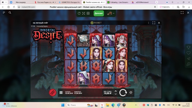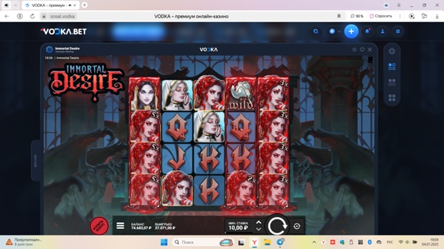 Слот Immortal Desire ставка 10 рублей х3707.