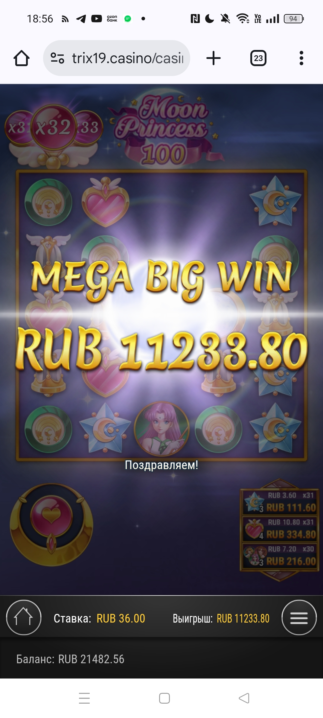 Trix casino, слот moon princess 1000, x312, ставка 36р