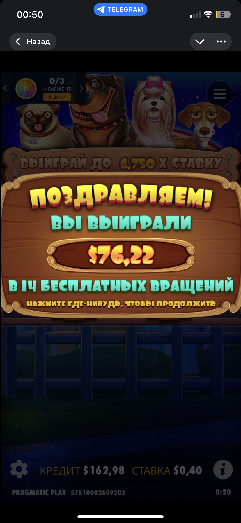 в обычном спине поймал х100, в слоте the dog house multihold на jetton
