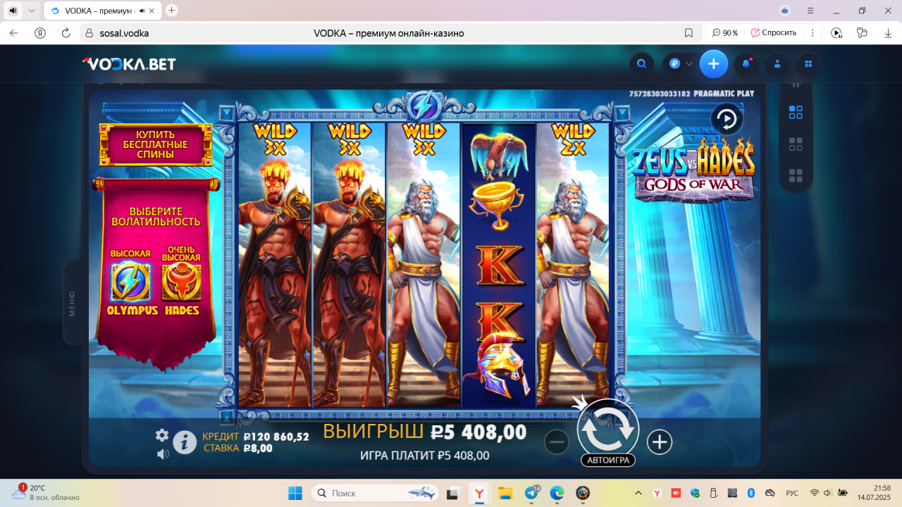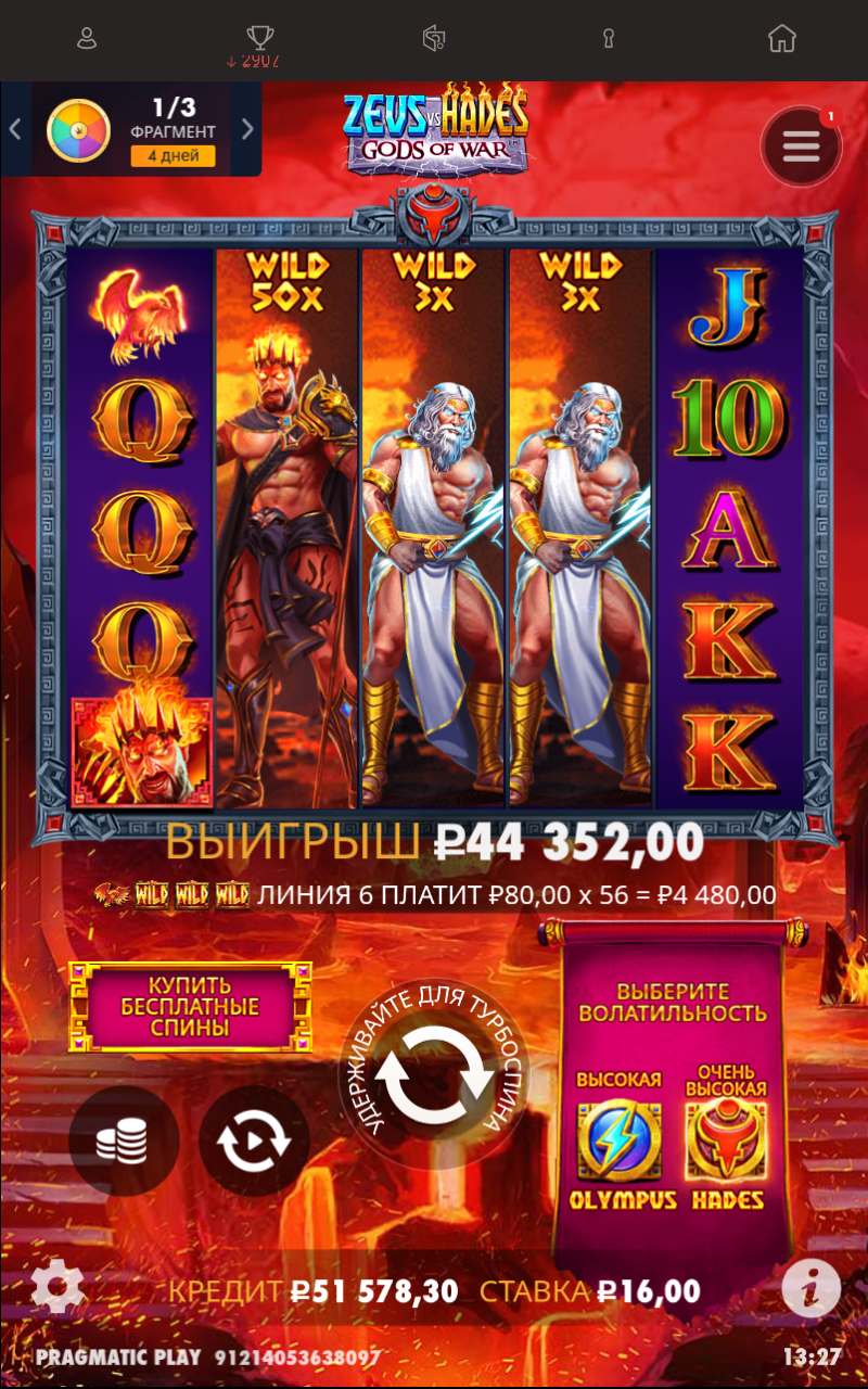 лютый занос в zeus vs hades от pragamatic play на jetton