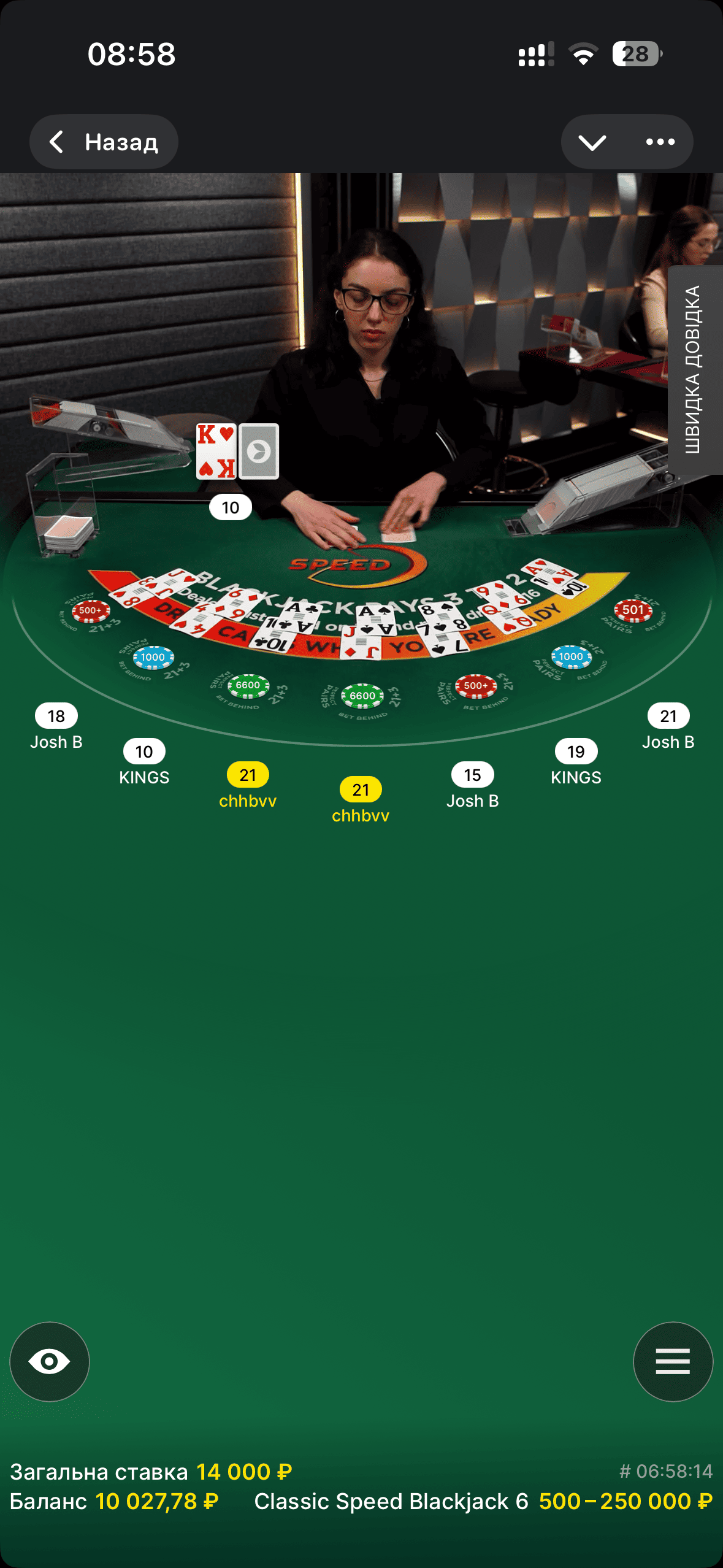 идеальный добор с 16 до 21 в блекджеке от evolution на jetton