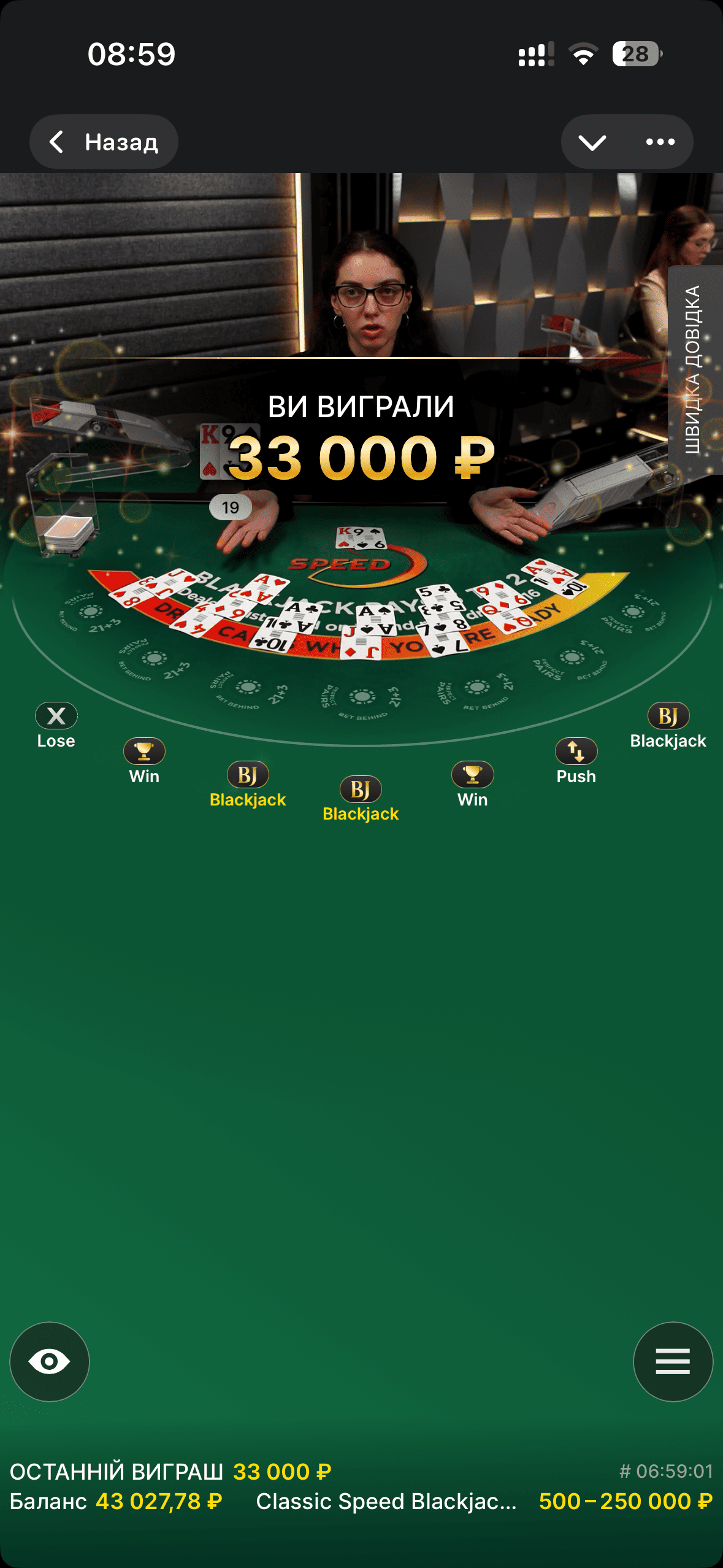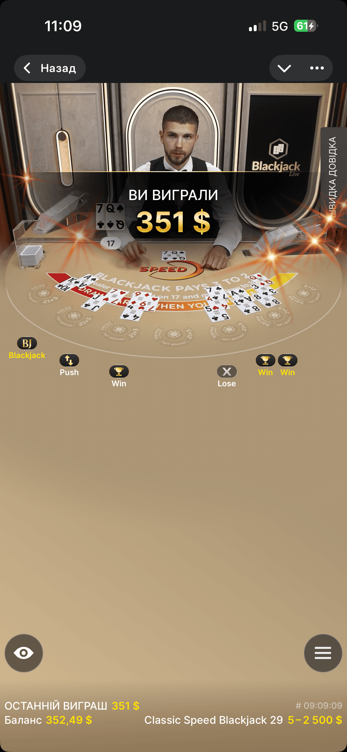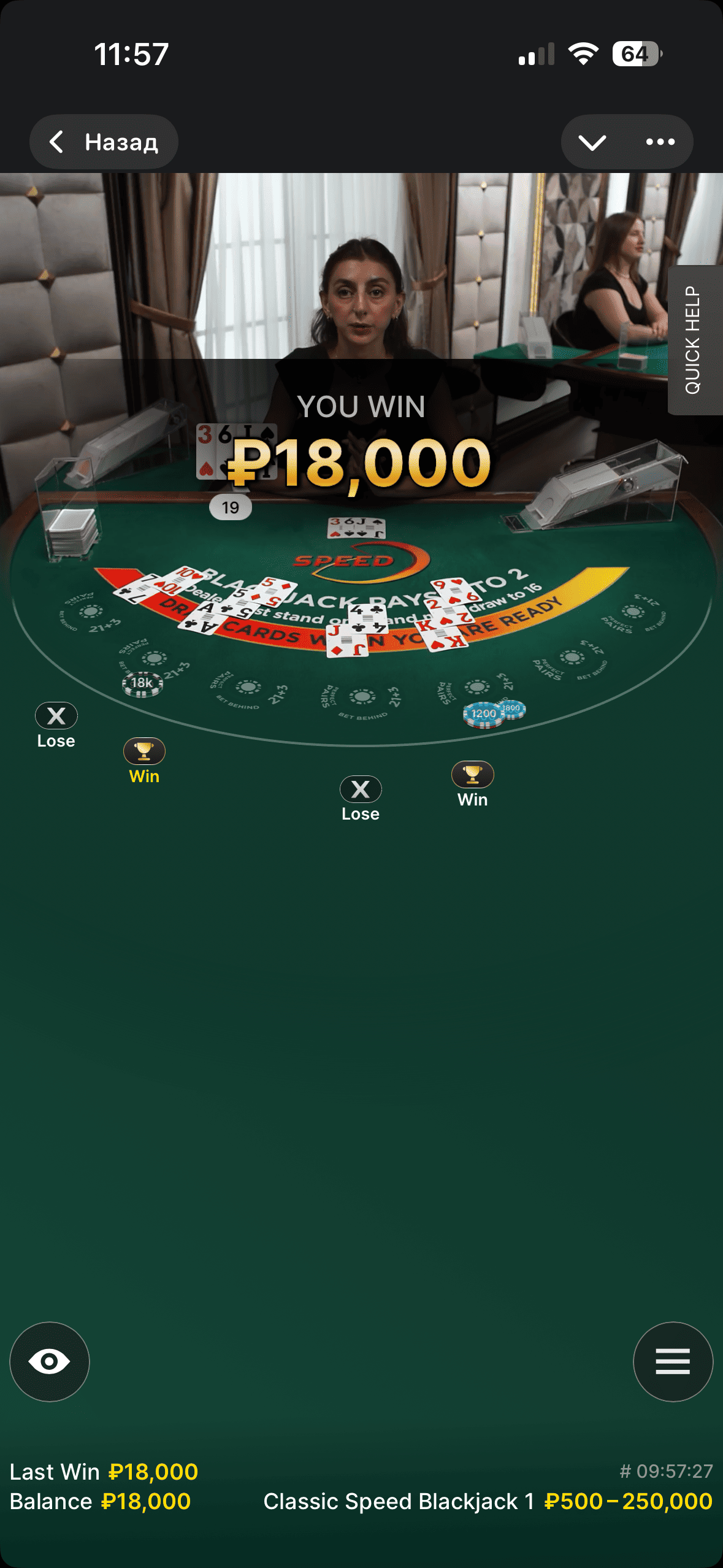 первая и последняя рука, с раздачи дало две 8 и блекджек, идеально сплитанул на восьмерках. казино jetton