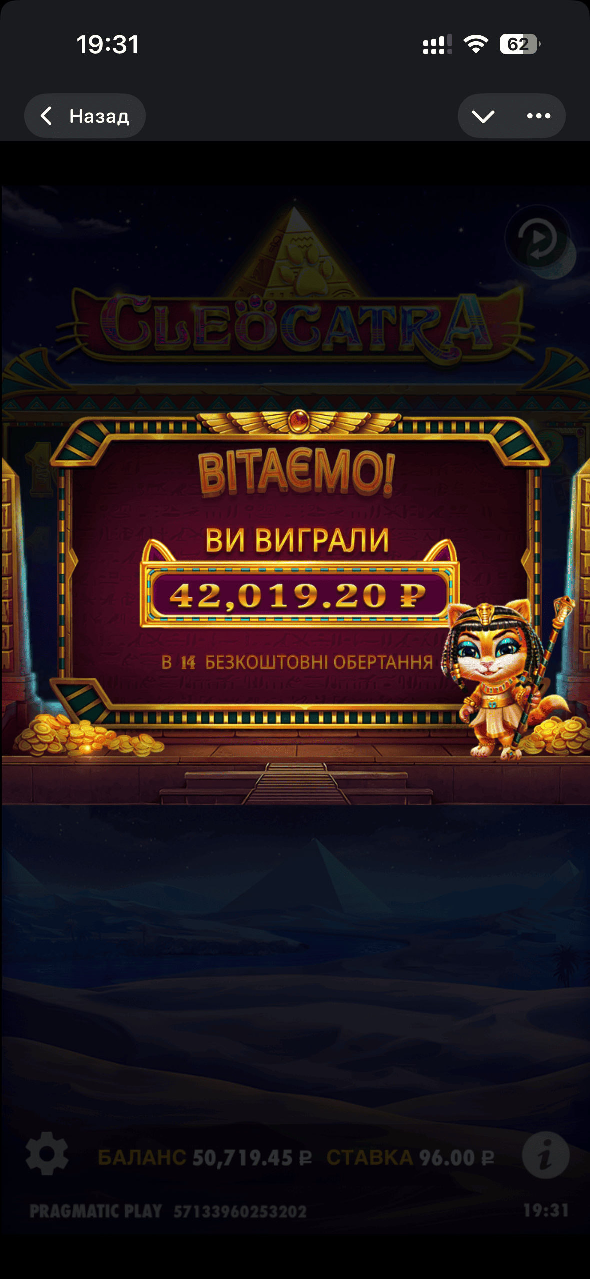 просто занос в cleocatra от pragmatic play на jetton, ставка 96р выигрыш х440