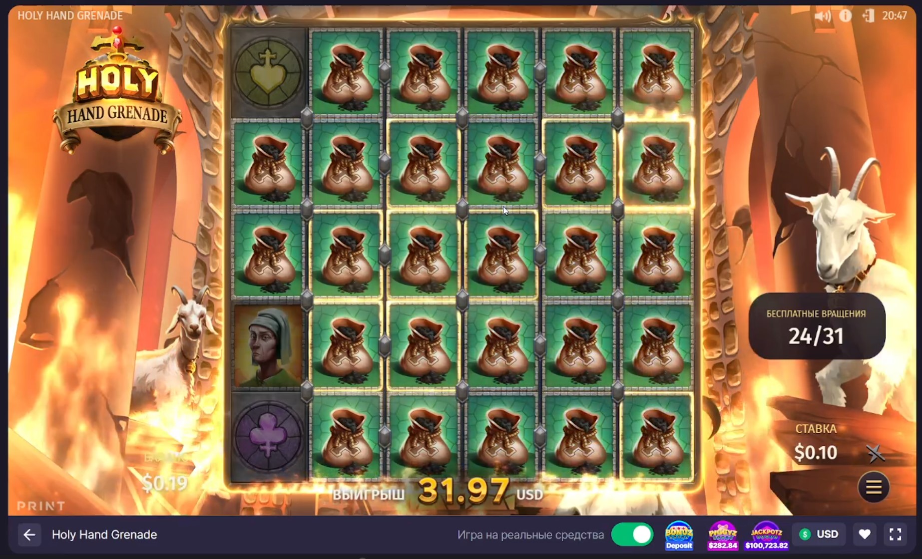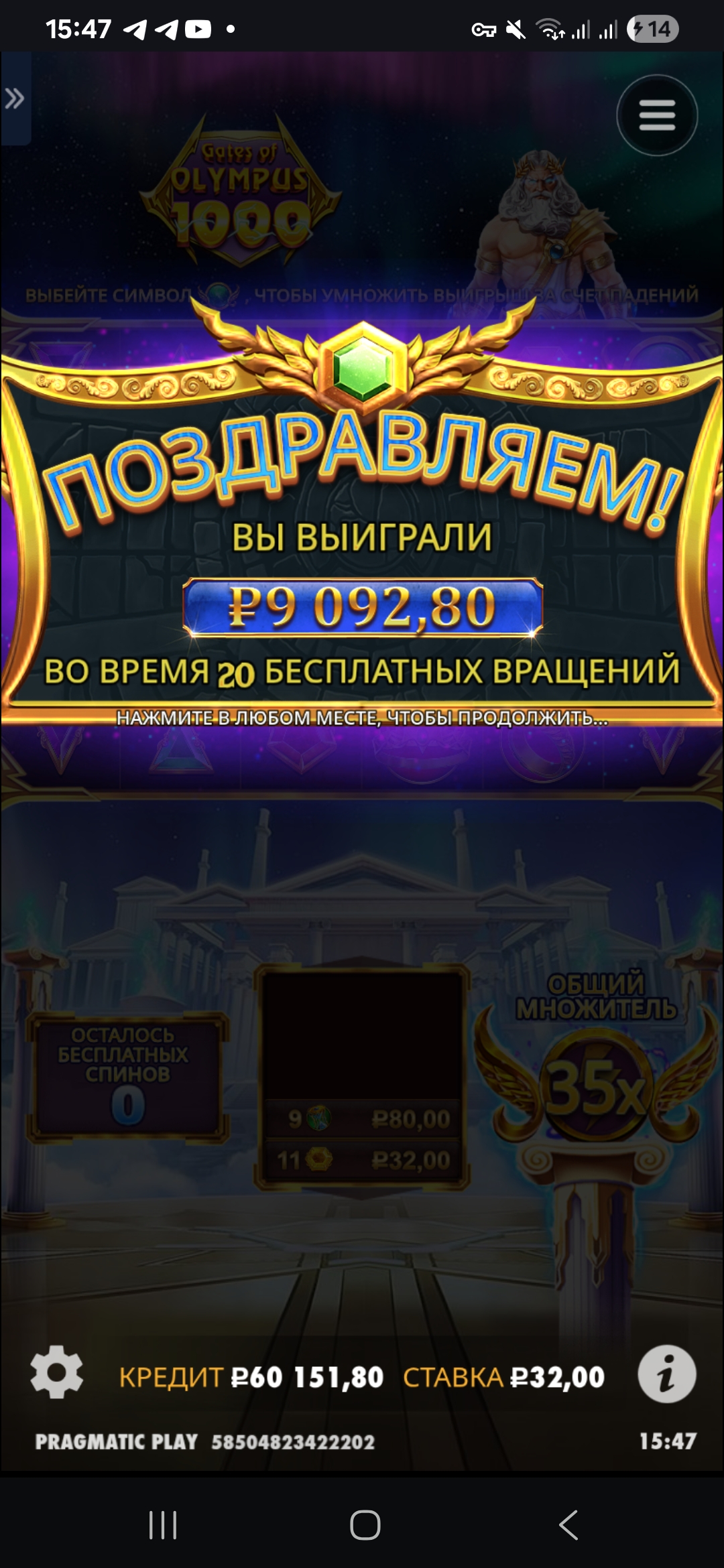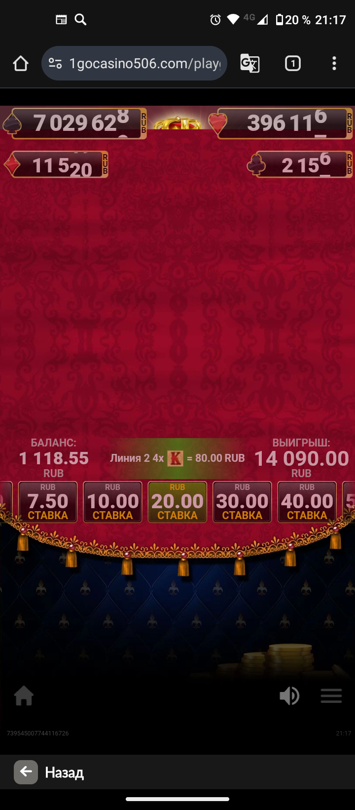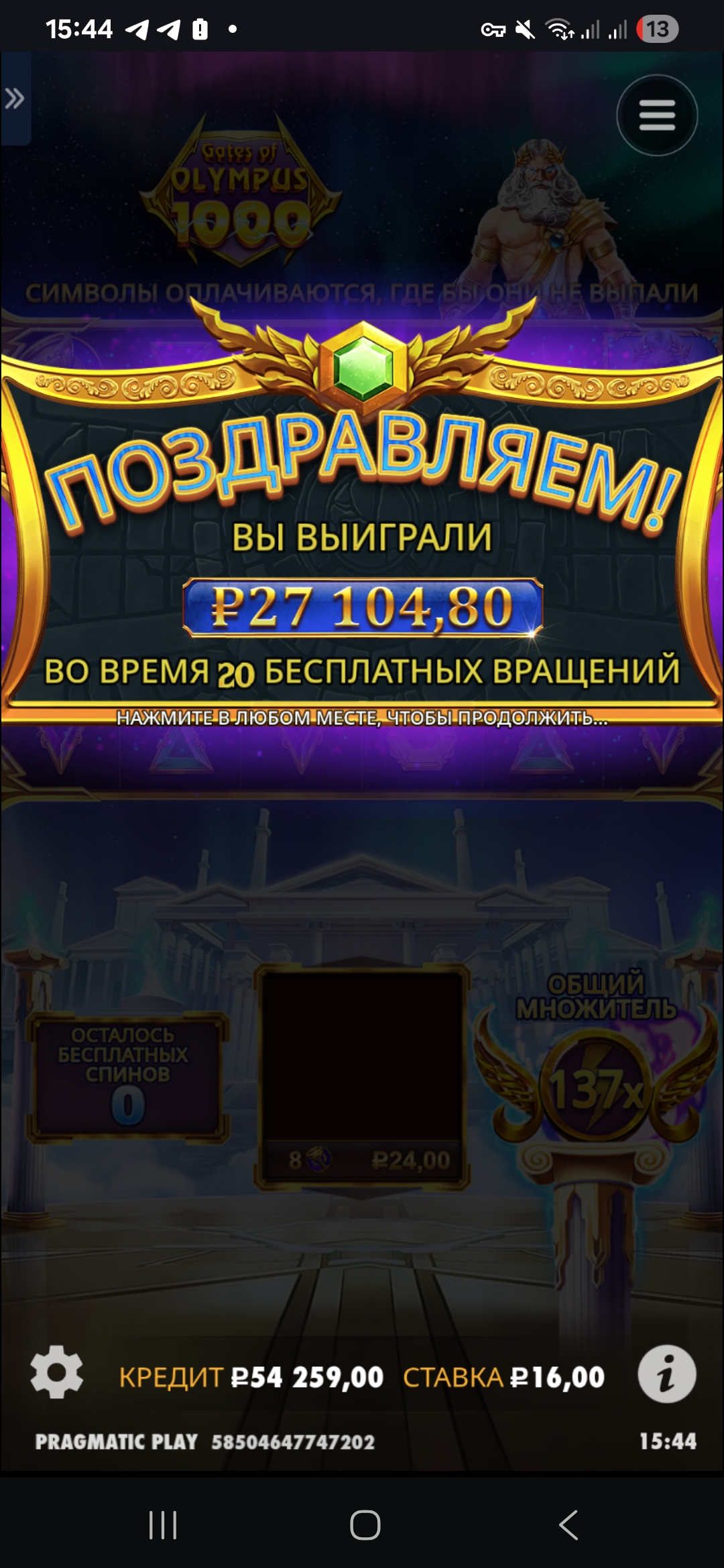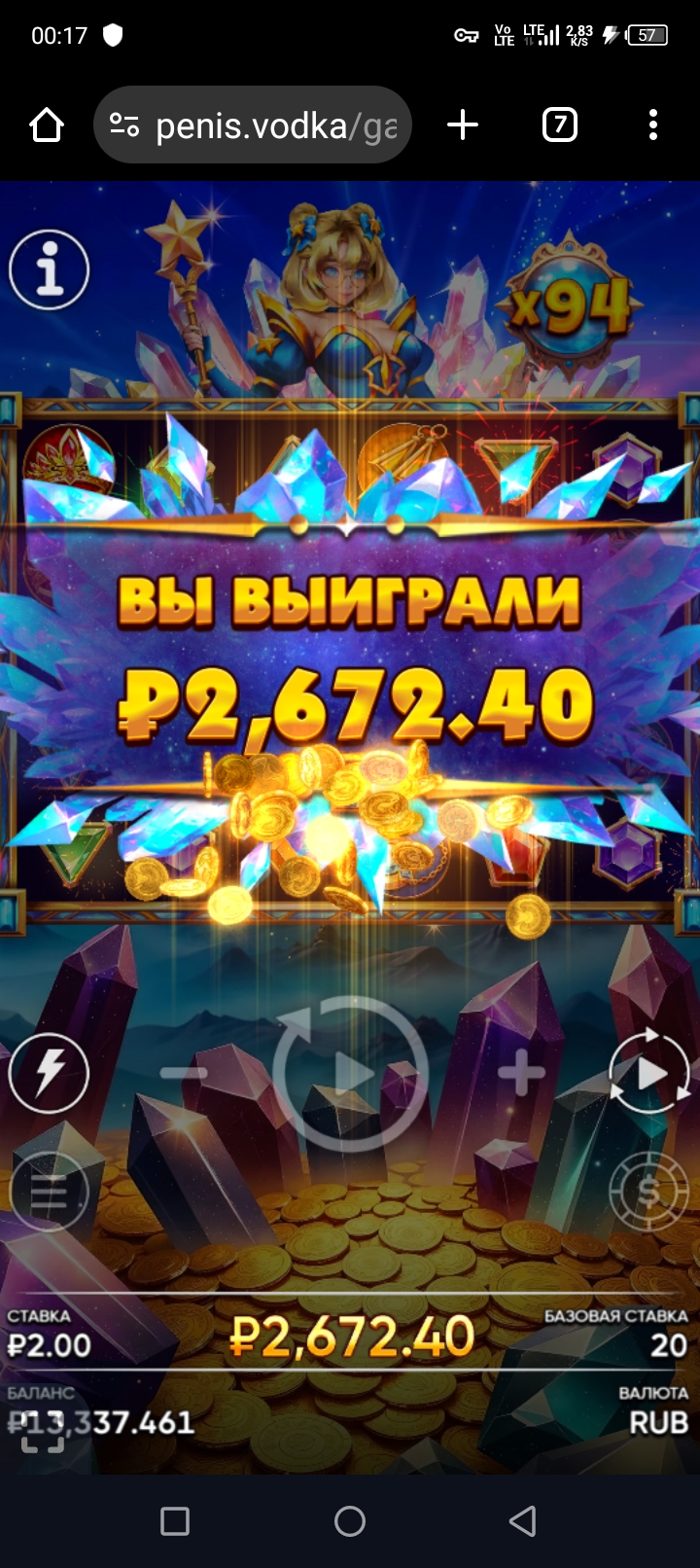 Не знаю как это работает, но опять спасение на последних спинах. Оставалось 19 копеек и игра поставила бонус. Играло очень красиво, насыпало х1300+ и под конец королевским спином еще х1700.