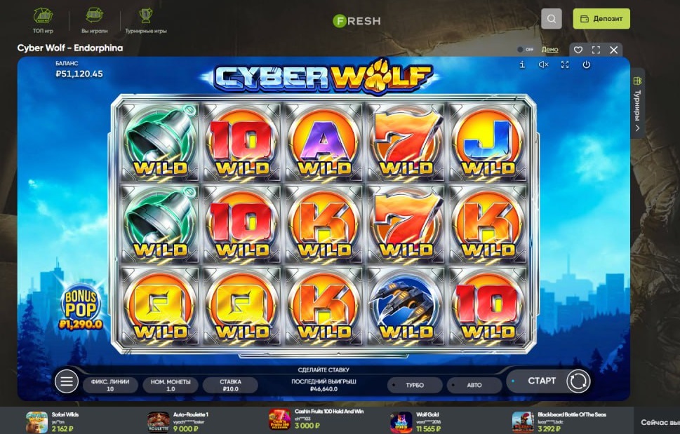 Казино фреш, слот cyberwolf эндорфина, х4664