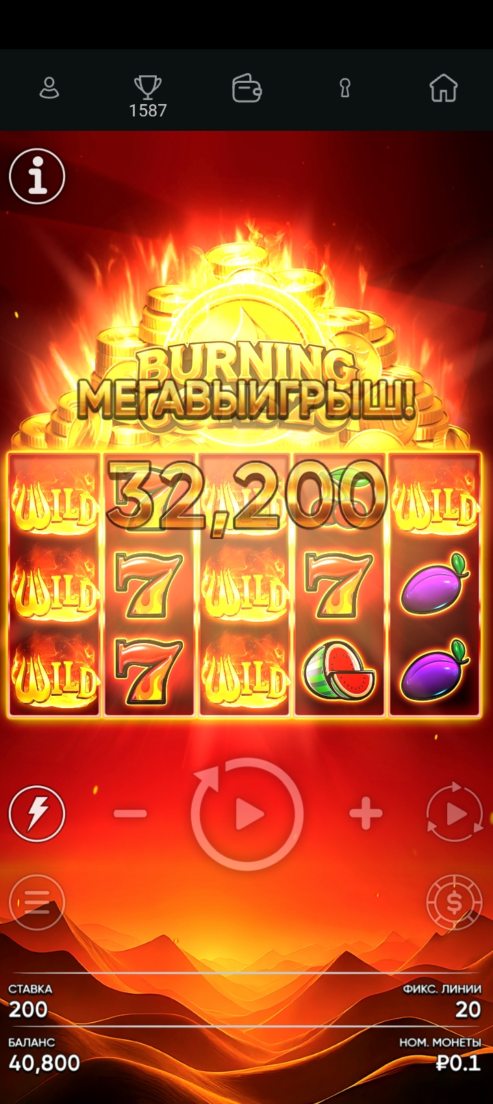 Казино Икс, слотик супер. Burning coins, ставка 40р и 20р