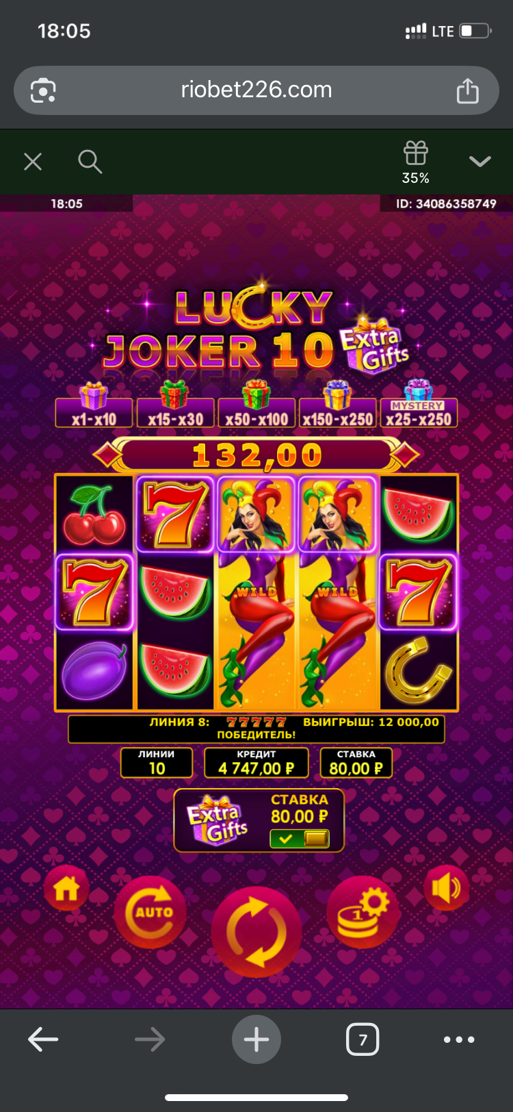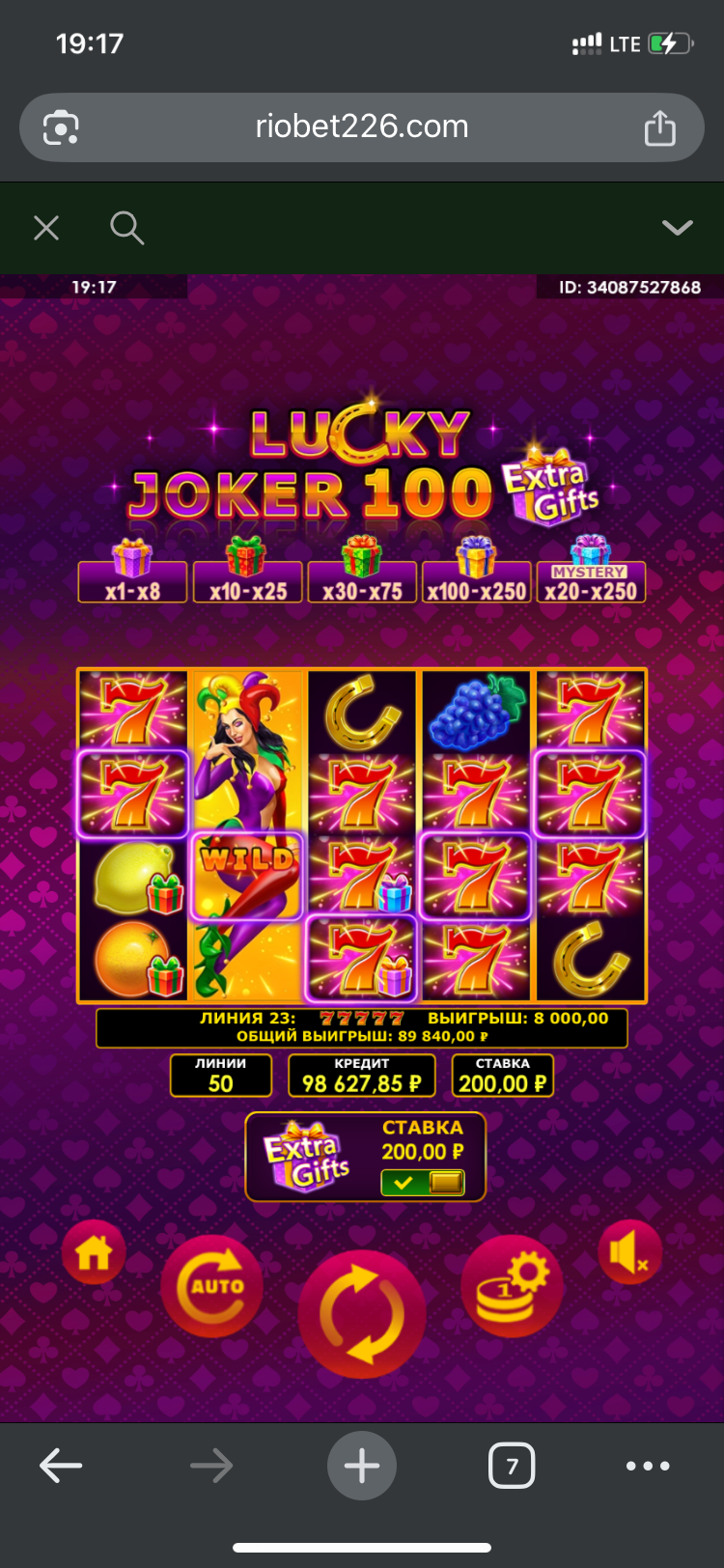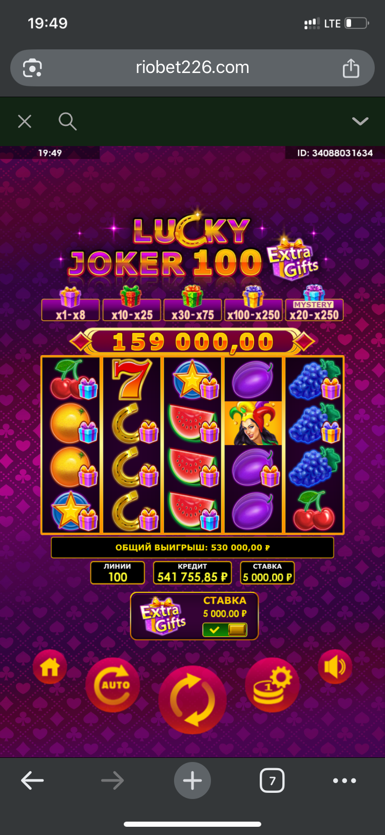 Казино Riobet. Слот Lucky joker 10 exstra gifts