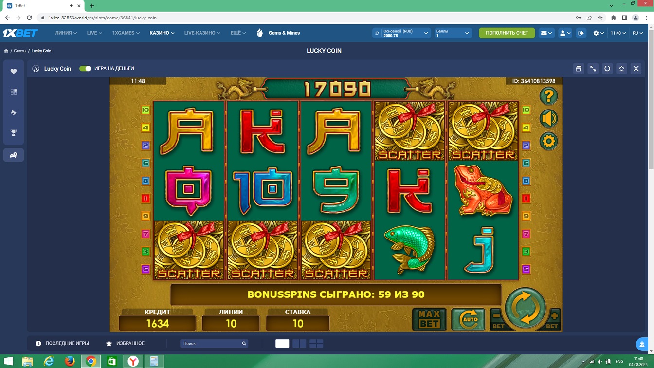 Казино Икс, провайдер 3оак, по ставке 200р.Почти сразу бонуску дал.