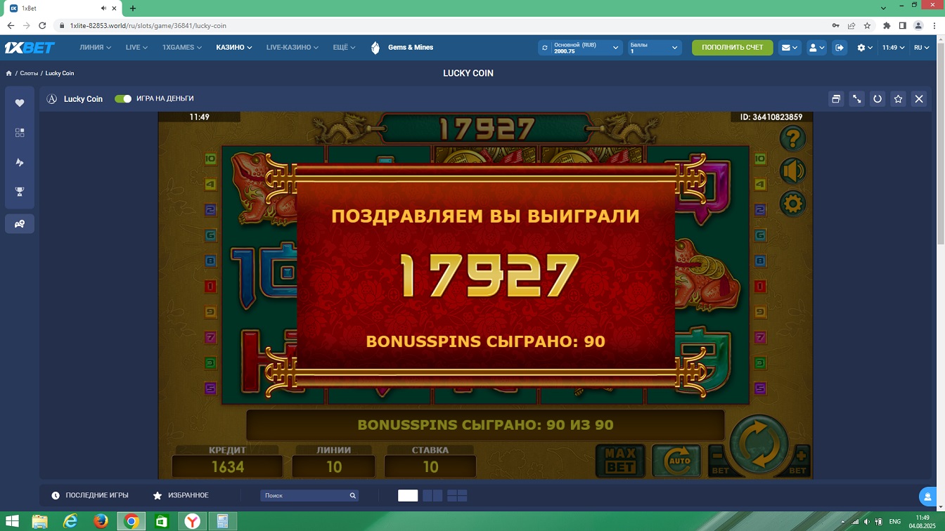 Казино Dragon Money слот hot fiesta x1016, неделю мучал слот на разных казино, так плохо он не играл никогда, но… здесь все таки отдался. Эх, жаль не по 1000 ставке)))