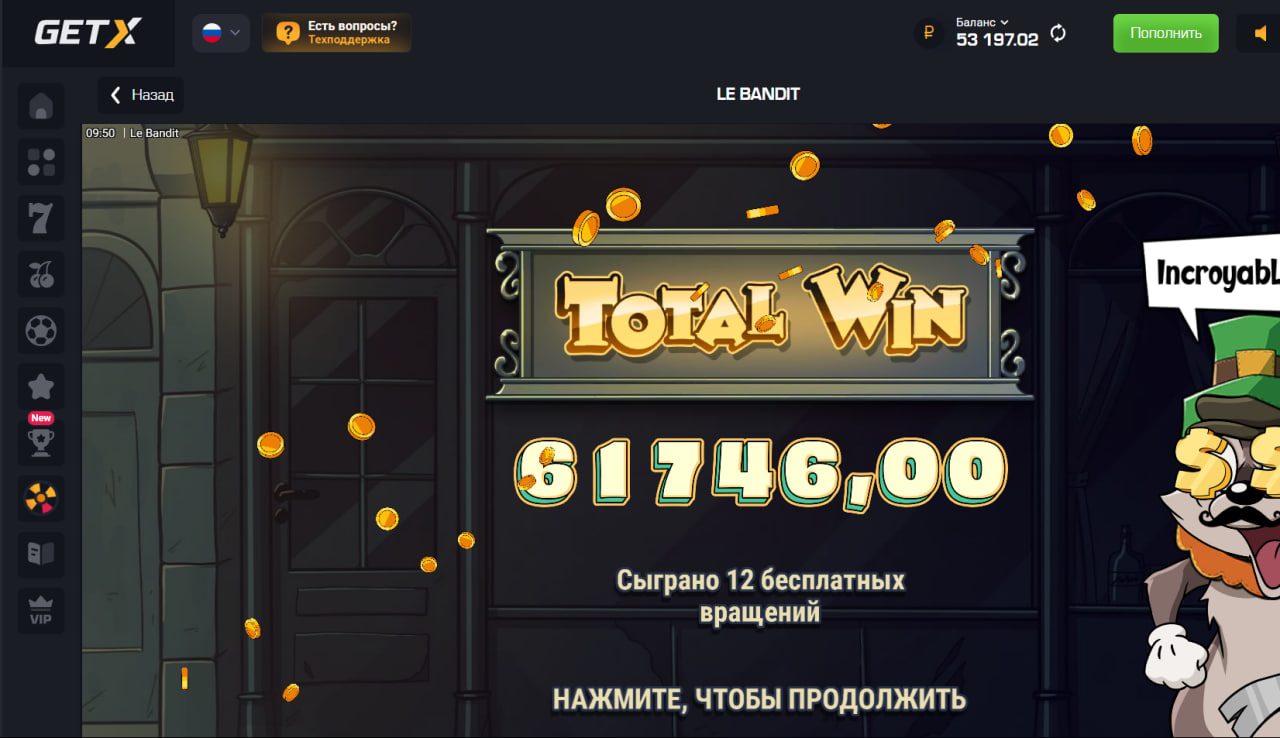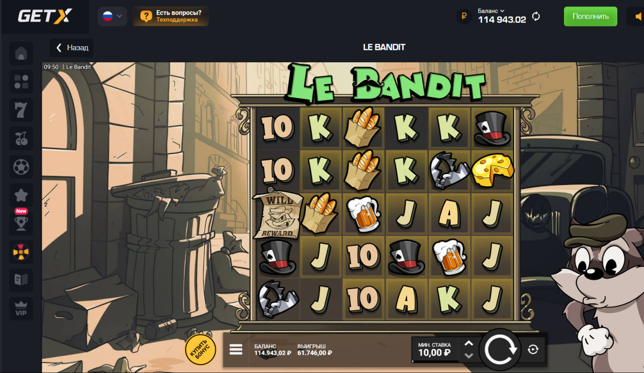 Казино Гет Икс слот Ле бандит ставка 10 х6174 упало 4 скатера