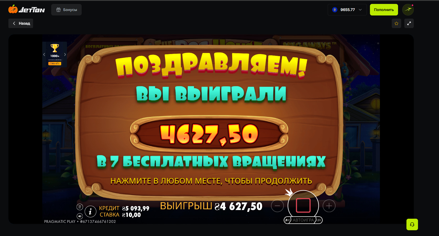 Jetton casino, перед этим в двух других слотах ловил топ бонусы, дали около х10, а тут обычная и х700, хрен поймёшь этот провайдер хаксов