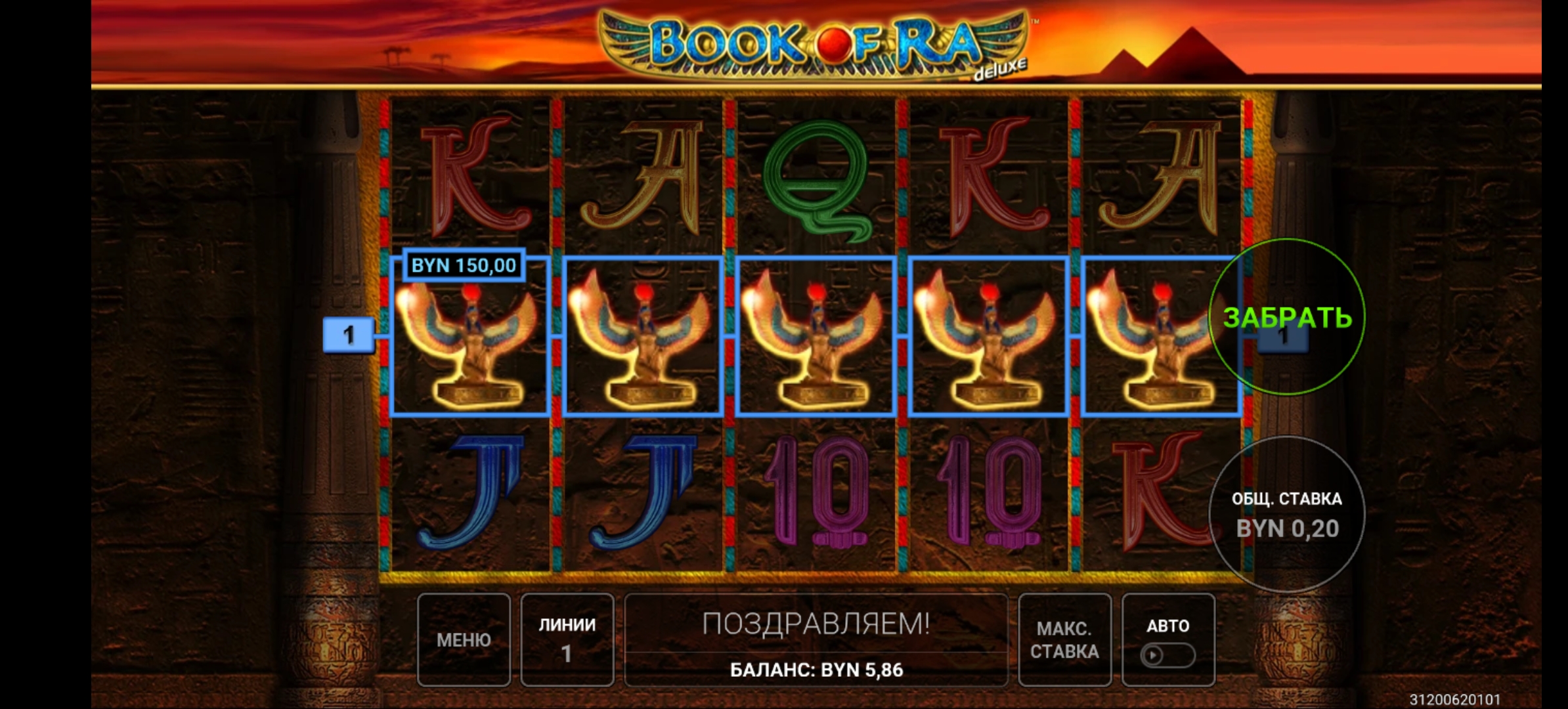 Казино Betera.by x750 по одной линии в слот Book of ra delux от Novomatic