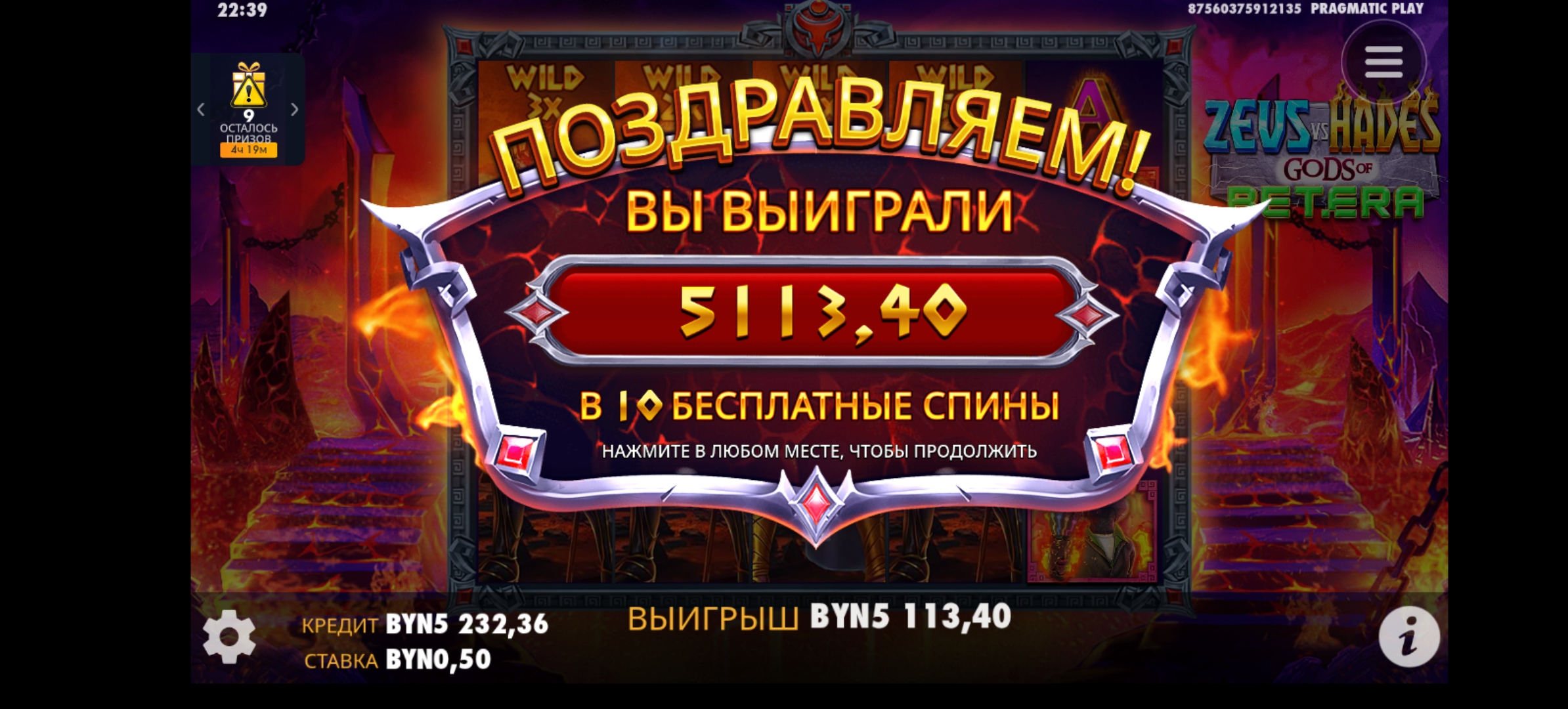 Казино Betera.by x10200 в слот Zeus vs Hades от Pragmatic. Ставка 0.5 byn(12rur)
