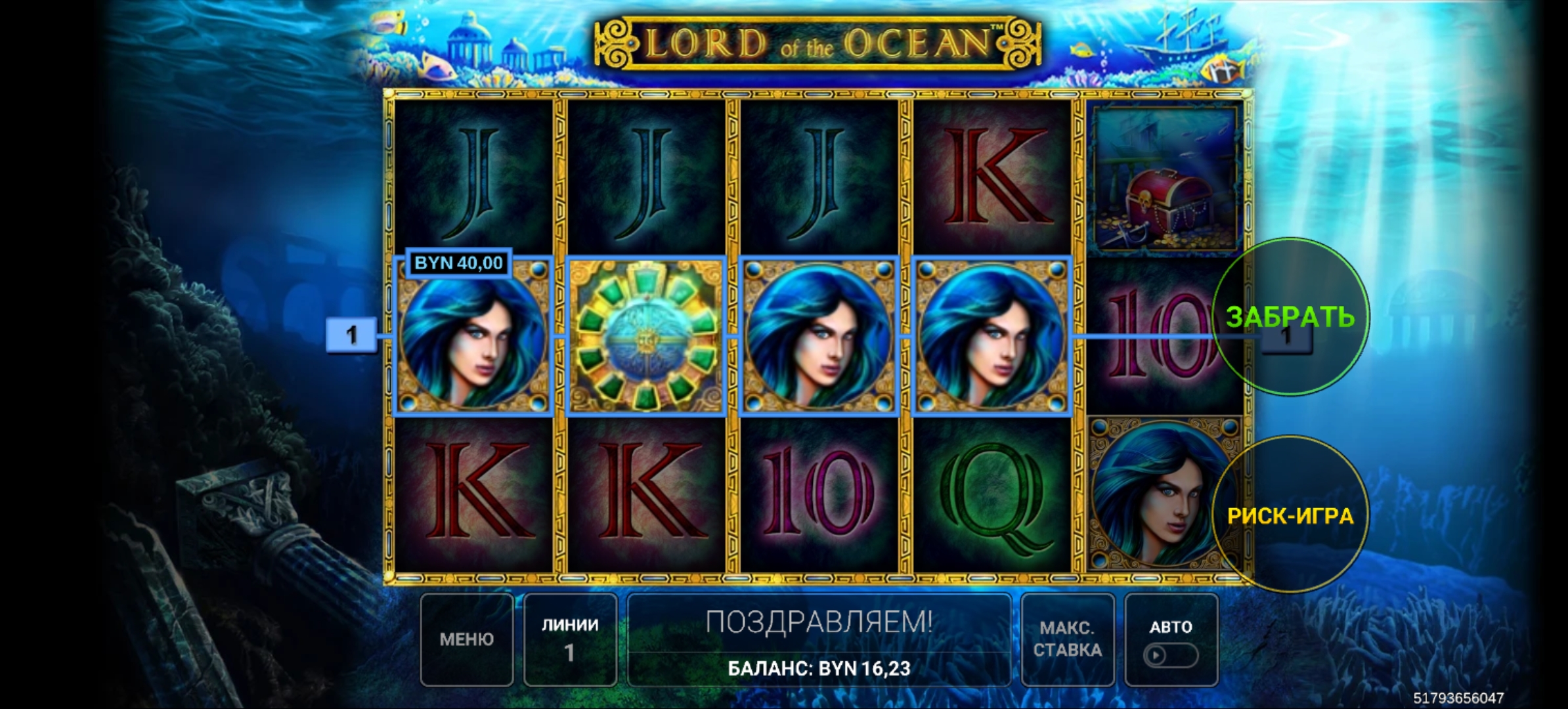 Казино Betera(белорусский проект). х400 в одну линию по мин ставке 0.1 byn. Слот Lord of ocean от Novomatic.