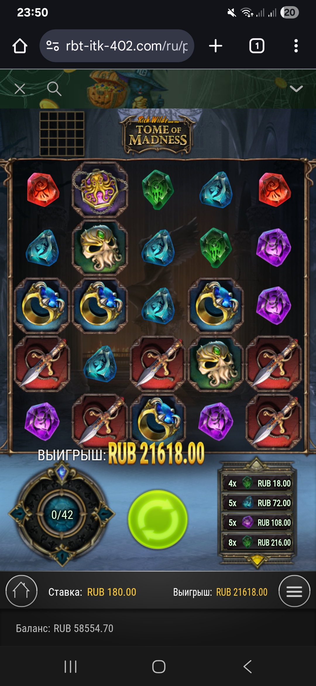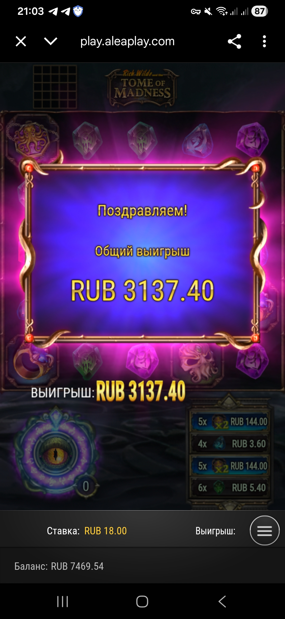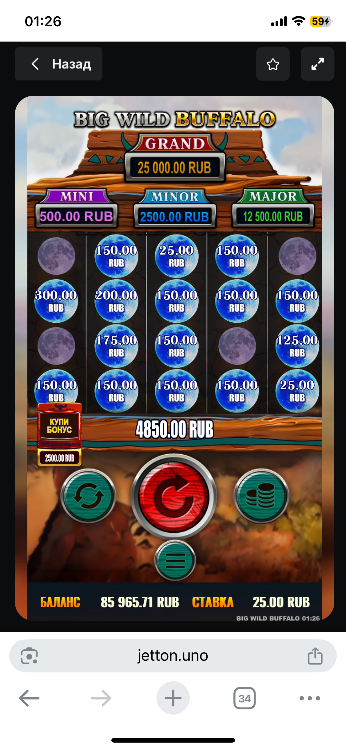 Вай казино. Прислали бонус 100 спинов по 10р за деп 1000руб. Решил сегодня депнуть минималку и покрутить по мелочи. И вот надо же именно сейчас по 1р ставка, выпал максимальный супер бонус с 5 скаттерами…впервые за тысячу покупных бонусов в этот слот по разным ставкам! Но словил по минималке!))) По итогу: Х22674