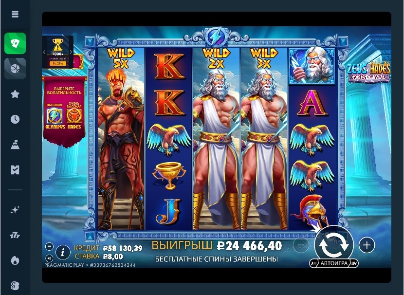 Казино Betera.by x10200 в слот Zeus vs Hades от Pragmatic. Ставка 0.5 byn(12rur)