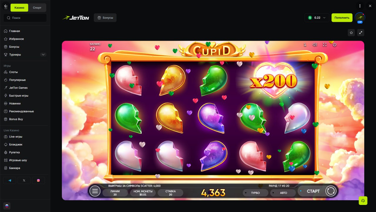 Поймал сердце X200 в слоте Cupid от Endorphina