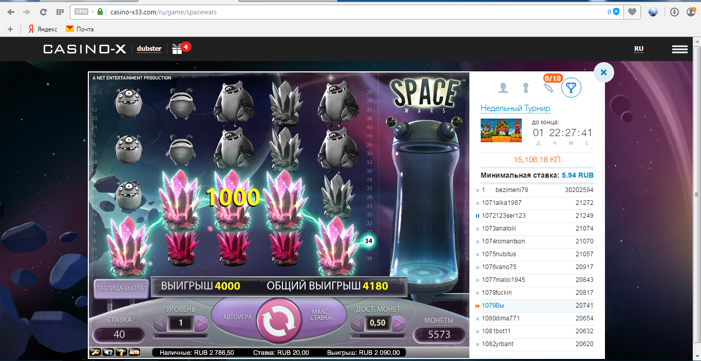 что за слот и где играл?да еще и в одну линию)