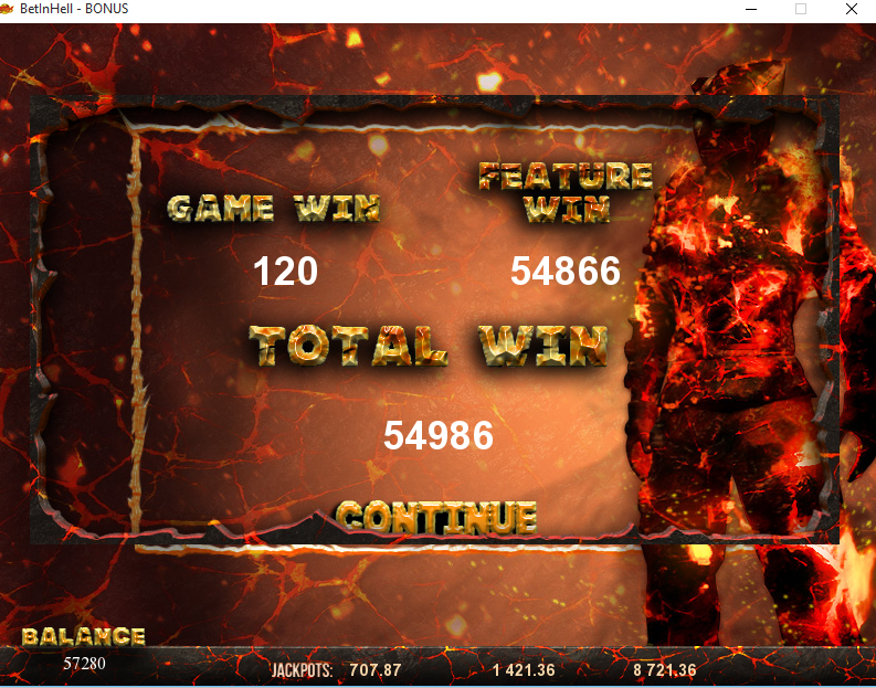 Не могу к сожалению скрин выложить, так как играл в оффлайне. Выигрыш был с линии что-то около 70000 р., ставка 90. Снимал с автомата ровно 70000.