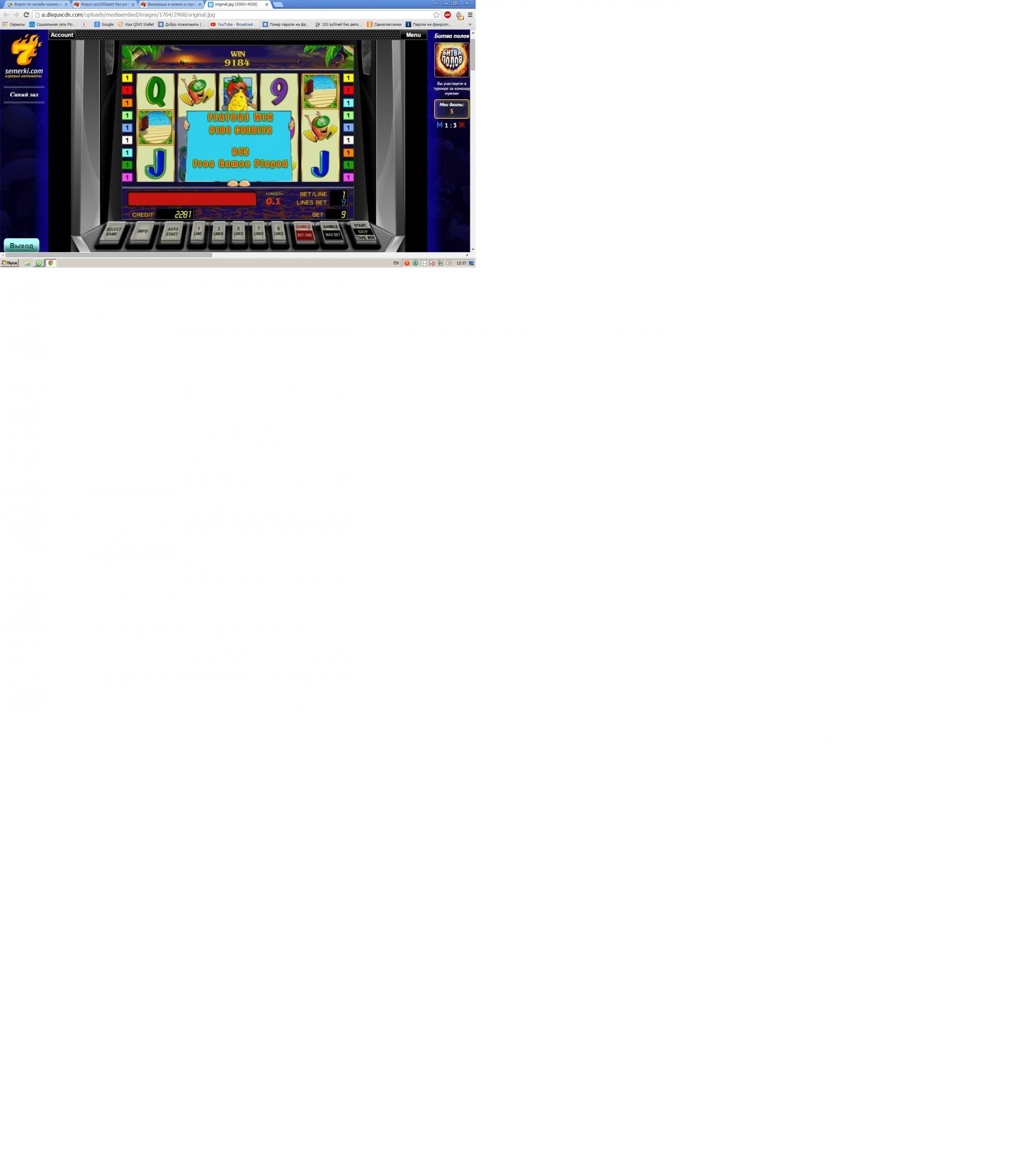 Вот мои старые скрины нашел еще когда семерки ком был жив сайт ,особенно второй скрин 945 фриспинов наверно больше часа крутил ставка 90 копеек итого 900 рублей дало )
