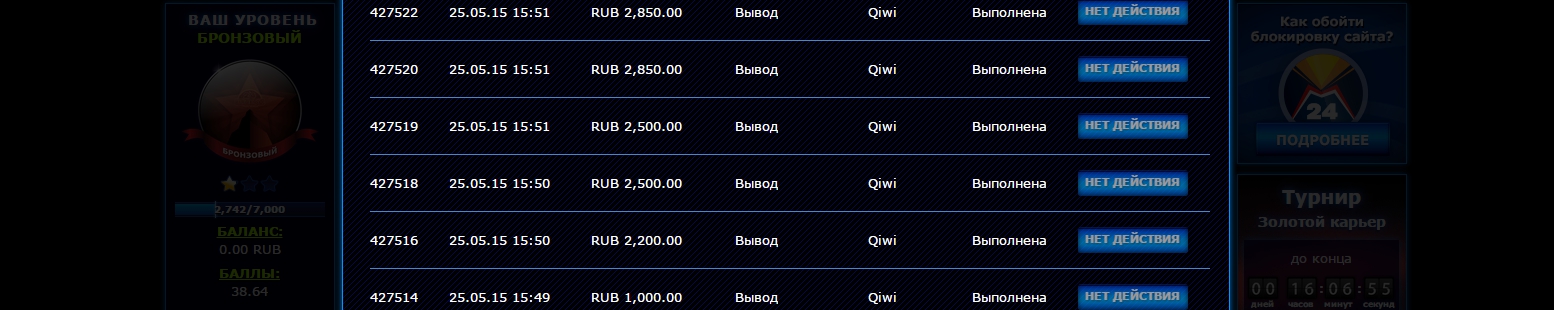 Предлагаю в этой теме собрать список казино, которые быстро выводят деньги. Меня просто выводят из себя эти постоянные задержки выплат в казино. Они постоянно придумывают разные причины, лишь бы задержать выплату. Много раз возникали ситуации, когда выплата растягивалась на двое-трое суток, а то и вообще целую неделю нужно было стучаться в поддержку с просьбами ускорить вывод.