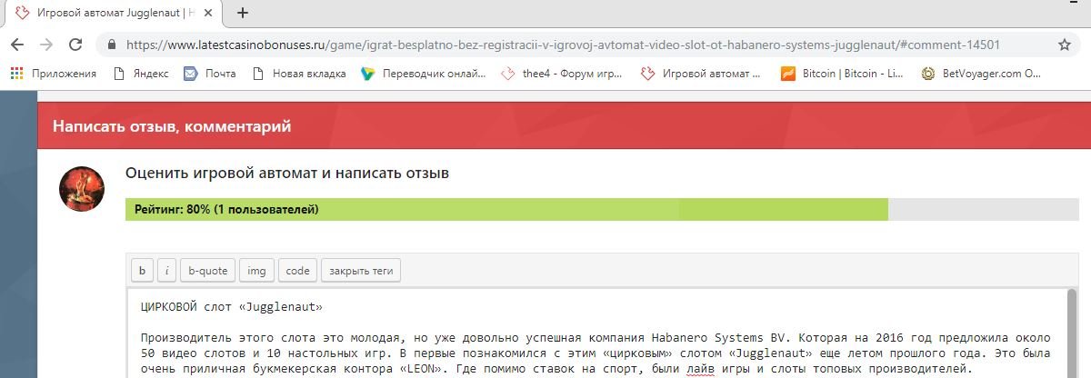 Попытался дважды разместить свой отзыв на слот «Jugglenaut», но как и раньше текст не отображается…