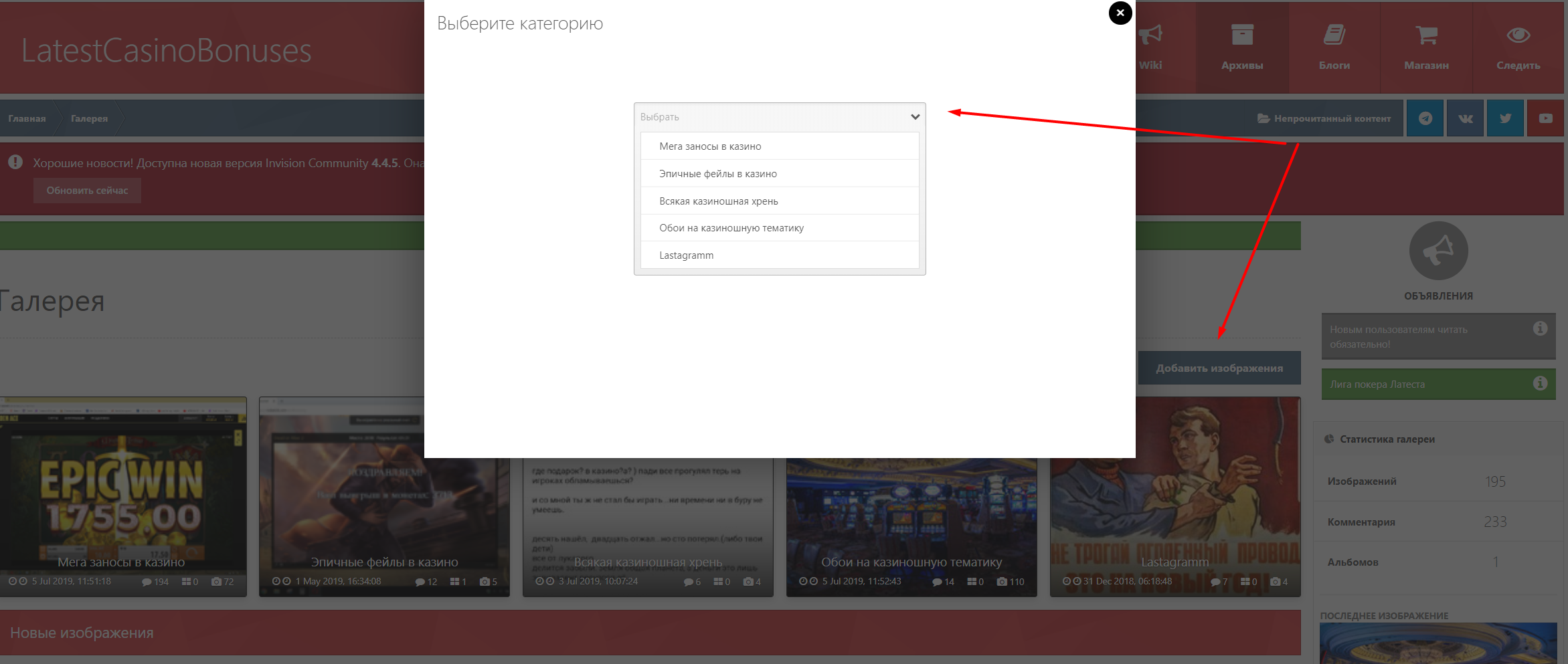 пропала кнопка загрузки фото в галерею. как теперь загружать туда фото ?