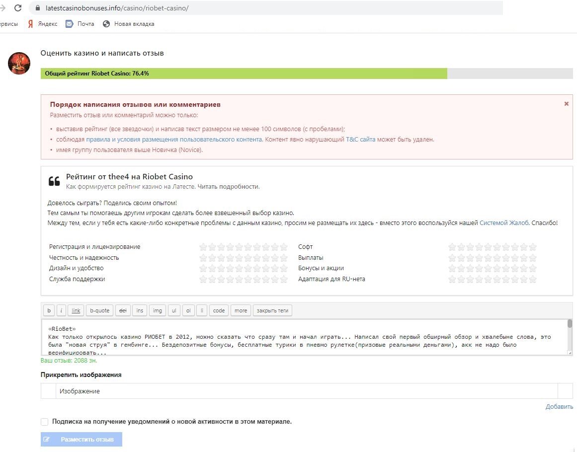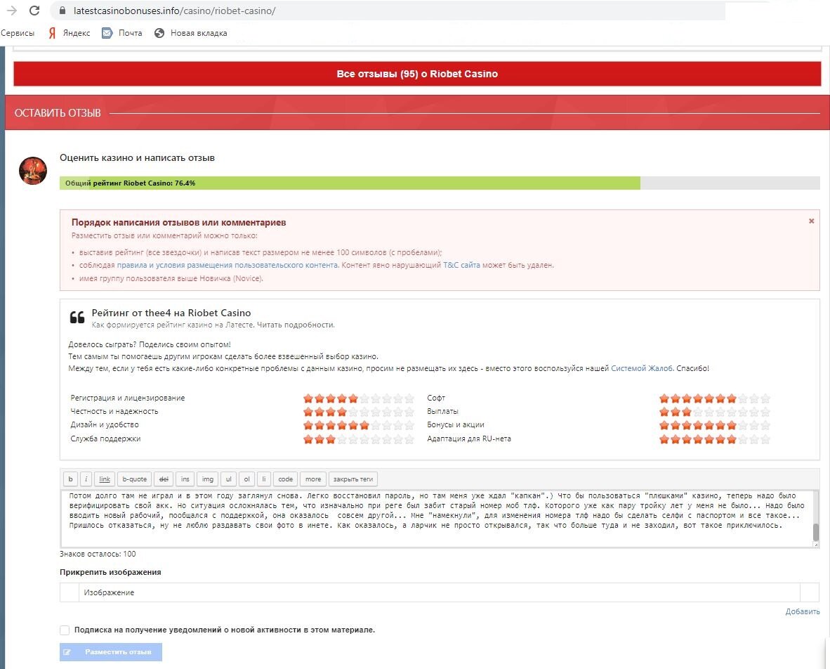 Не получается выложить отзыв за казино РиоБет(Лив Рулетка), не активна кнопка «Разместить отзыв», пропала возможность выставить рейтинг (звездочки)