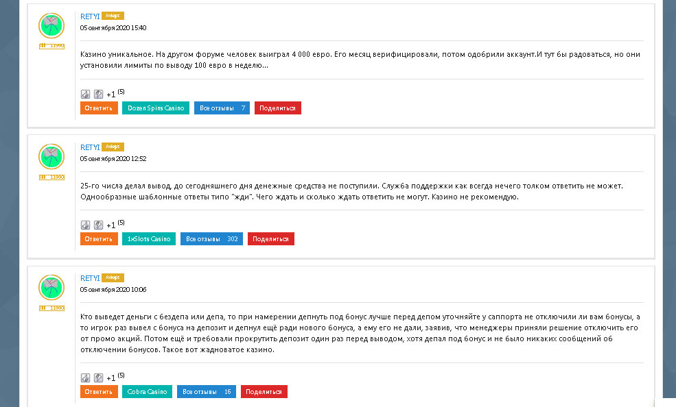 Что-то подглючивает на сайте. В основной ленте отзывов на казино подставило мой ник в авторы сообщения, которое в обзоре написал не я.