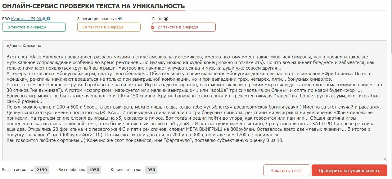 Какая то непонятка, при выкладывании отзыва за игровой автомат «Jack Hammer»… После проверки текста по количеству символов, копирую его