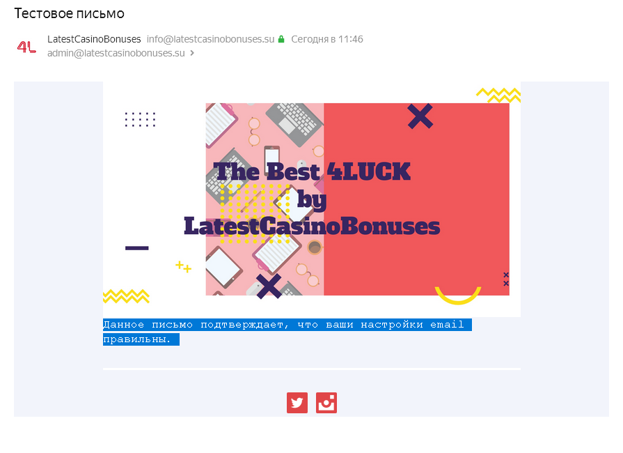 Тестовое письмо было отправлено без проблем:
