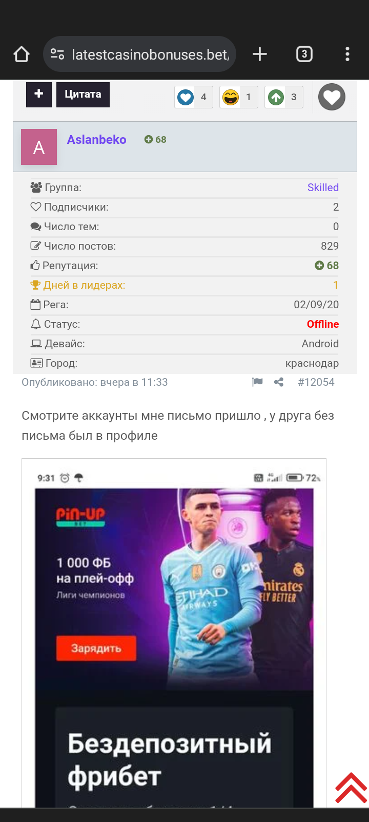 Добрый день) да. Вчера весь день висело то сообщение с спамом. Сегодня другое: на превью про коды в пинап (как видно на скриншоте), а в самой теме другое сообщение. С пинапом ещё видимо на модерации и в теме его нет, но в превью есть. Не могу же я телепатически сообщения из будущего видеть)