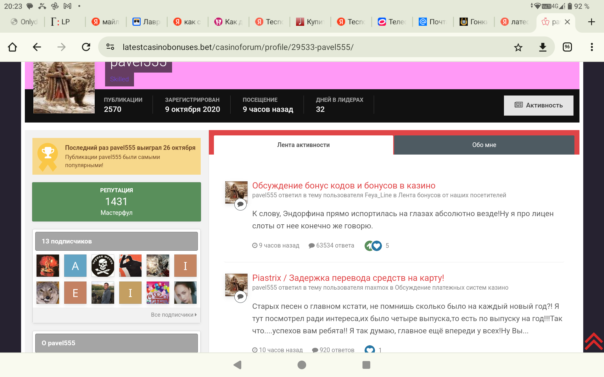 При нахождении в аккаунте на форуме у меня система показывает 19 подписчиков,а не с аккаунта 13.Что- то странное опять происходит.Я с большим Уважением и Вниманием отношусь к тем, кто интересуется моими темами и подписан на мой профиль,поэтому должен знать актуальную информацию по подписчикам от и до считаю.Прошу Вас разобраться с данным багом