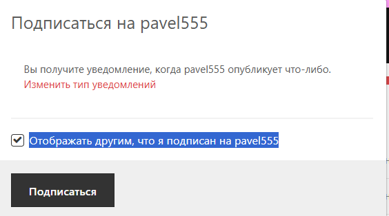 Добрый день! Andrey_777 верно вам отписал. Во время подписки на профиль подписчик может выбрать вариант, отображать свою подписку на вас другим или нет!