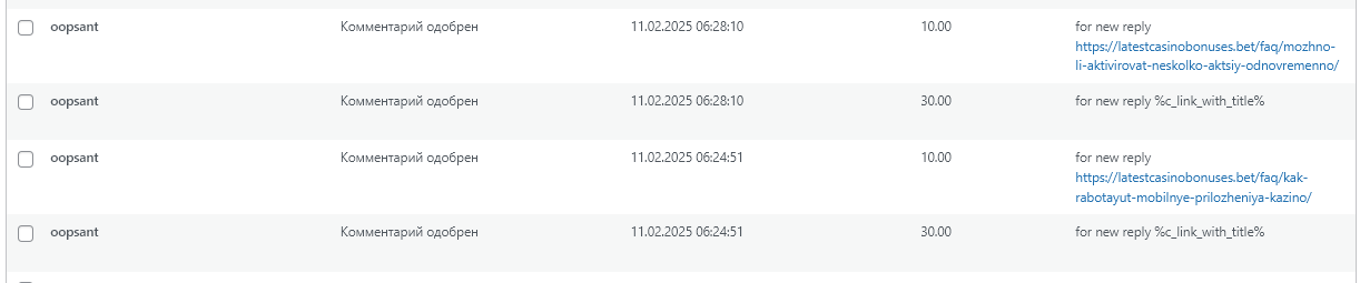 С обзорами на слоты всё в порядке — по моим ссылкам кидает на мои же посты (даже на модерации сообщения) А вот с отзывами по казино по моим же ссылкам не кидает на мои сообщения (я их не вижу, что они на модерации) хотя при этом оценить казино уже не могу (проставить звездочки) только дополнить сообщения, Всё в порядке и сообщения появятся как модератор их одобрит?(если одобрит) или почему то он их не одобрил уже, проверьте пожалуйста.