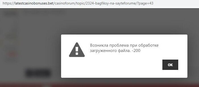 Пытался загрузить скрин, появляется окно с … «Возникла проблема при обработке загруженного файла -200»