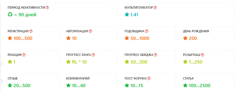 Все базовые начисления указаны в профилях каждого участника