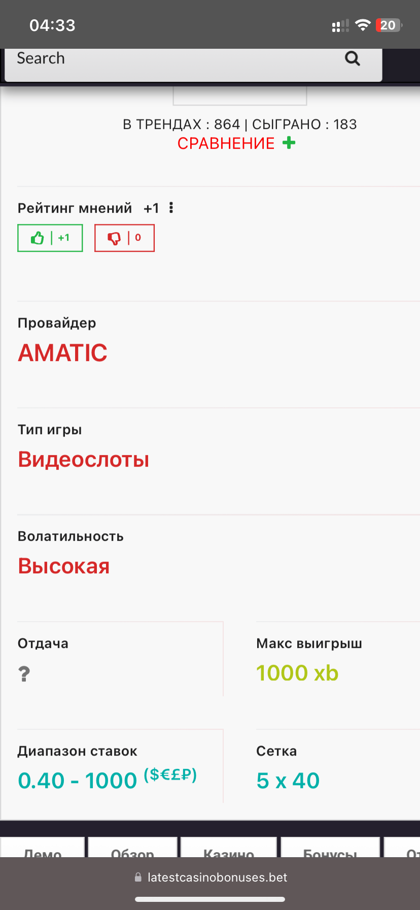 Писал сейчас отзыв на свой любимый слот от Аматик и нашел ошибку в описании. Слот Hot Soccer. Ошибка в минимальной ставке. Минимальная ставка 0.10 центов или 10р, а не 40.
