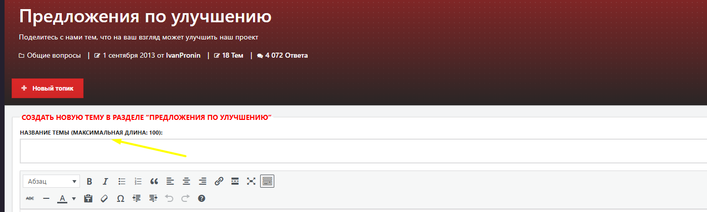 если «Новый Топик» такое может быть, если в заголовке использовалось больше 100 символов