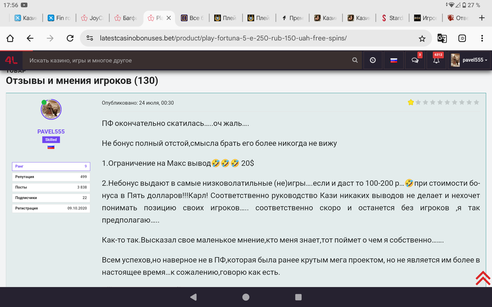 Предполагаю,что модерация не осуществляется по «какой-то причине»,какой это нужно подумать,очевидно представитель Плейфортуне будет очень недоволен,если отзыв пройдет модерацию и будет опубликован!