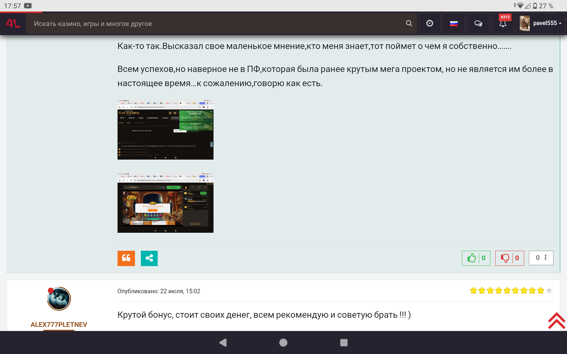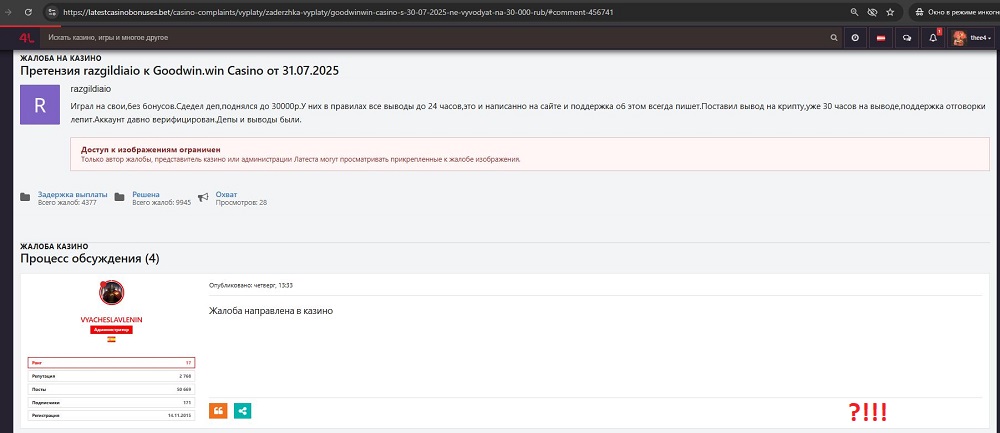 Тут решил посмотреть одну жалобу на казино GoodWin, цена вопроса 30К. И захотел лайкнуть Славентия за хорошую работу, но не смог, теперь нет такой возможности?! Зачем и для чего это надо было кому- то делать, это ж обратная связь с игроками, которым не все равно?!…