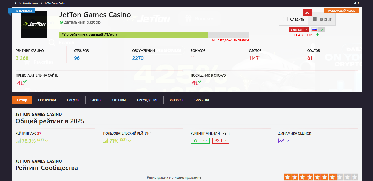 Вот! Ваша ссылка ведет на обсуждение казино, а если не с форума переходить, а с обзора казино, то ведет к «Товары от Jetton…)