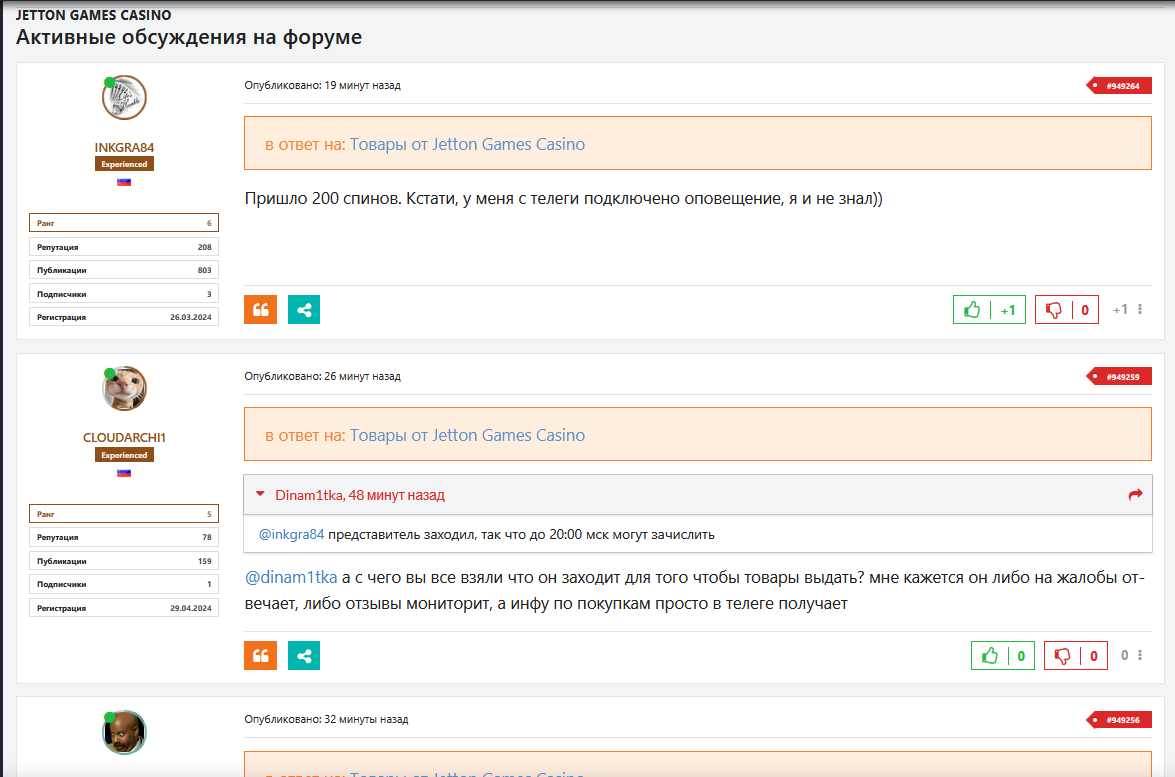 Может поэтому и обсуждают казино больше народу в товарах Жеттона)