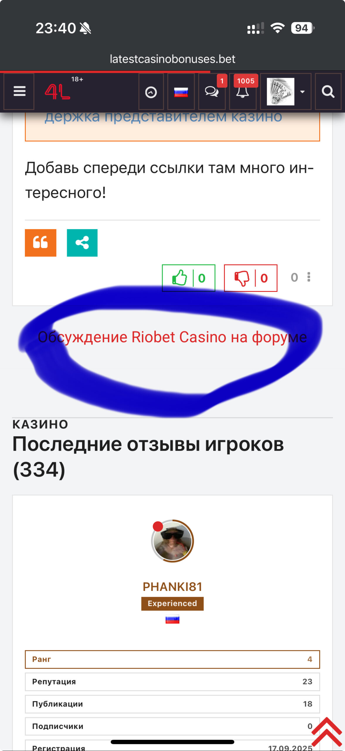 Отсюда если переходить по кнопке в обсуждения казино, я имею ввиду как на скрине вот этом