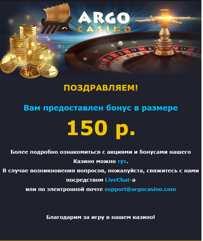 арго казино, уроды грвеликолепнные, отказали в бездепе, мотивируя якобы дублирующим аккаунтом, хотя до этого на бездеп с магазина бон дали, короче лохотрон а не казино