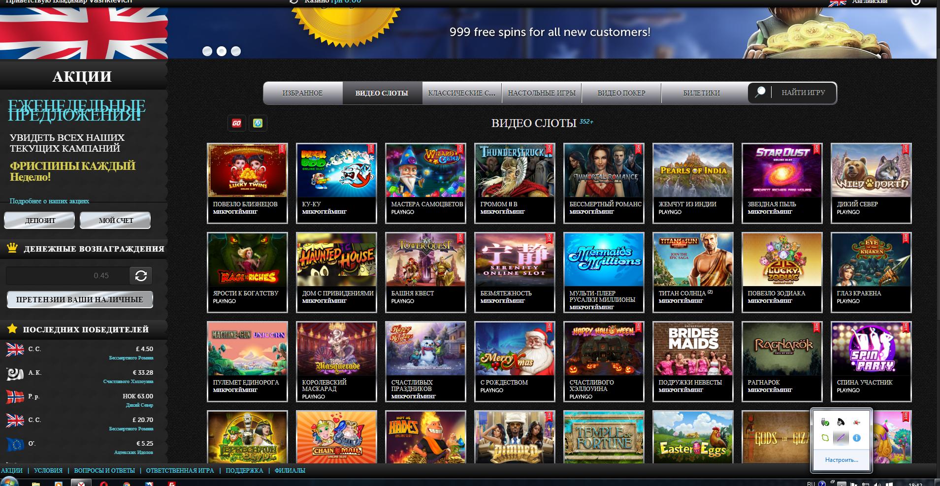 России дали, сразу в слот зашла. там 10 спинов висело.