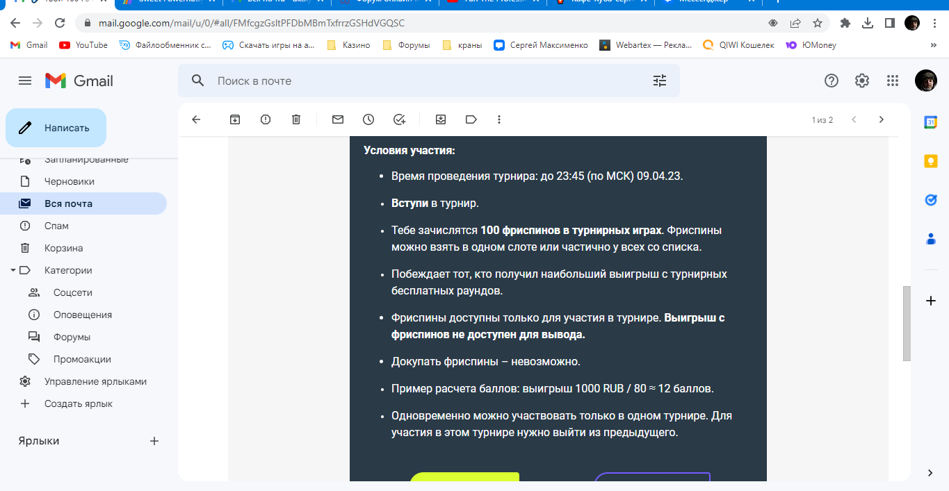 Медиа от участникаПисьмо от mr.bit пришло,на 70 бездепозитных спинов. Депов не было давно,раньше частенько играл. Открутил спины,один спин хороший был с бонуской на х720,остальное ни о чём!