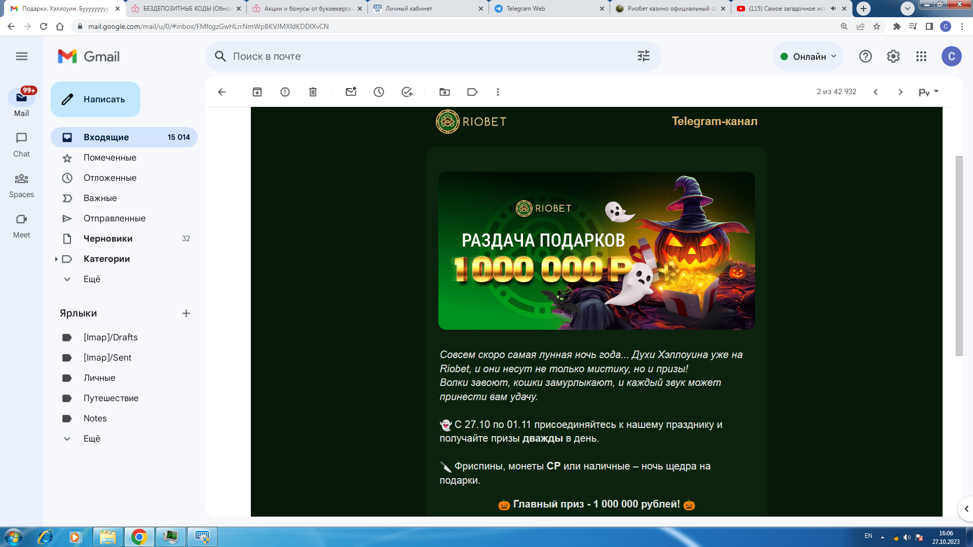 С 27 октября по 1 ноября — дарим подарки в честь Хэллоуина.