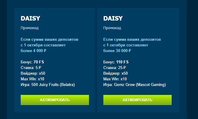 *Промокод доступен для пользователей, совершивших не менее 15 депозитов всё время